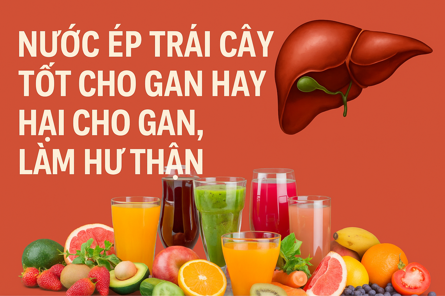 👉 Tóm gọn lại: uống nước ép trái cây đúng cách thì rất tốt cho gan và sức khỏe, nhưng uống sai cách hoặc quá nhiều thì lại có hại – đặc biệt là cho gan, tụy, và đường huyết. ✅ Lợi ích của nước ép trái cây Giàu vitamin & chất chống oxy hóa: giúp gan đào thải độc tố, tăng sức đề kháng (đặc biệt là vitamin C, A, E). → Ví dụ: nước cam, cà rốt, táo, chanh giúp gan khỏe hơn. Hỗ trợ hệ tiêu hóa…
